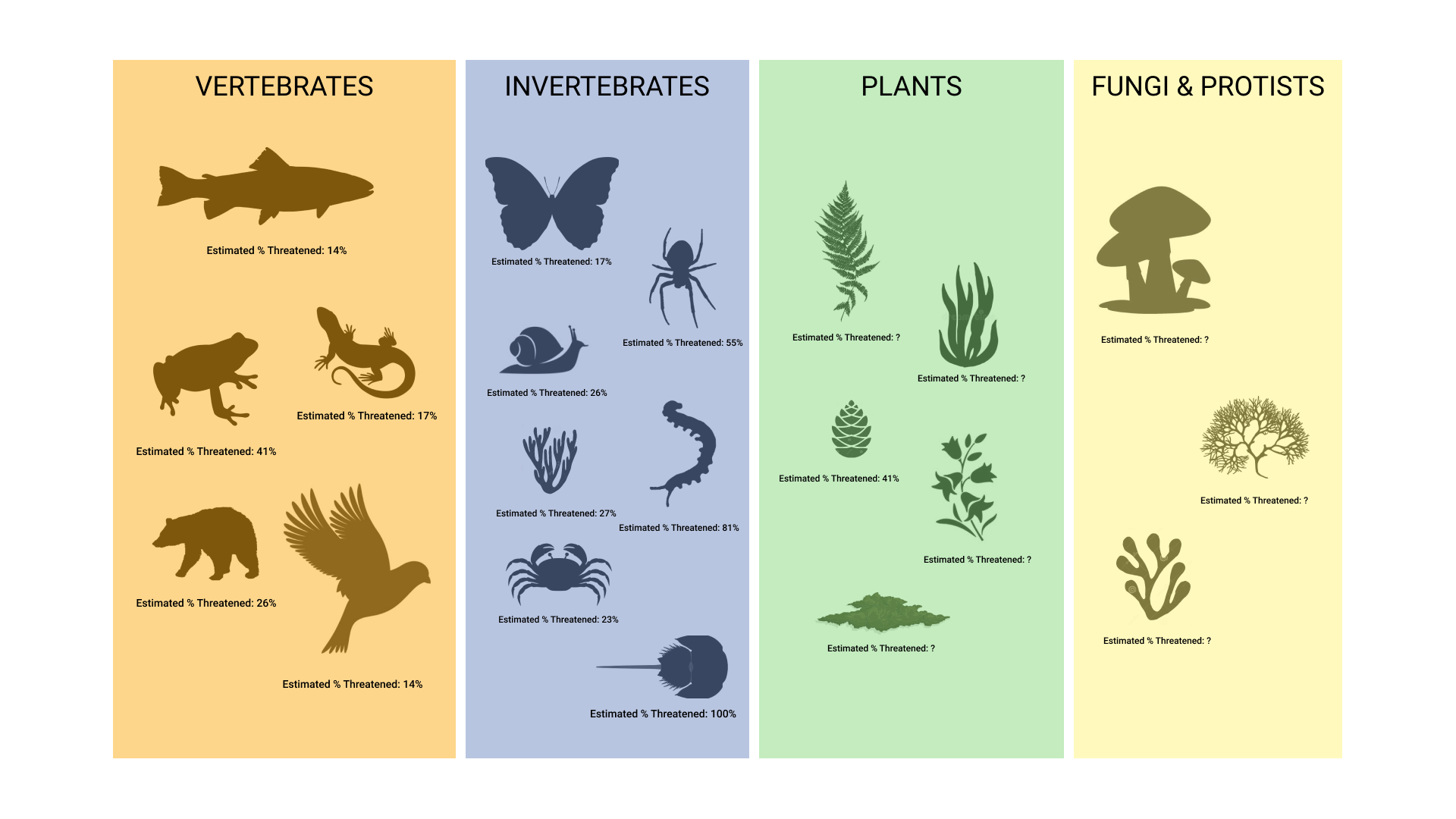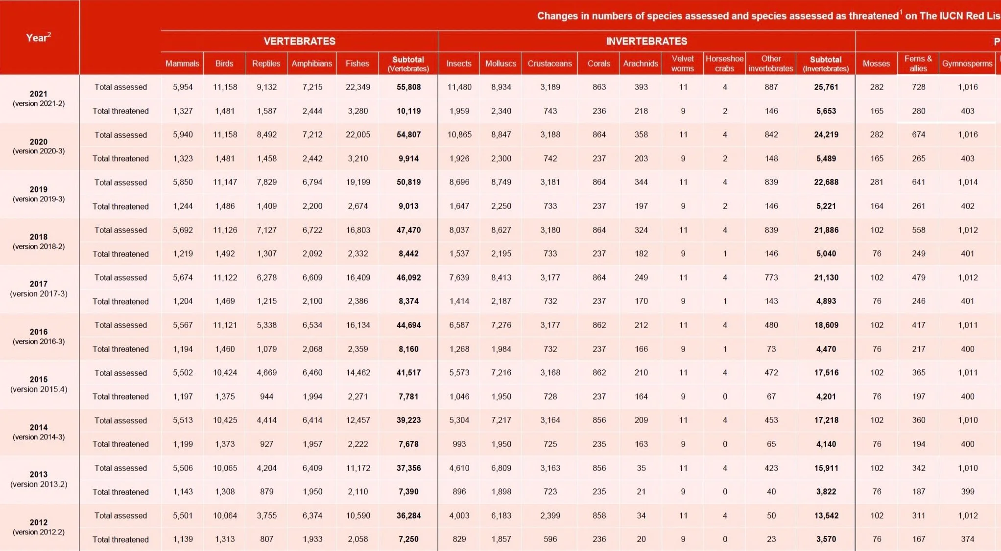 By further evaluating all the raw datasets, I decided to focus on vertebrate species because they have a higher percentage of evaluation by IUCN so the species number data has a better representation of the real situation.